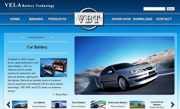 VELA BATTERY TECHNOLOGY (VBT)Founded in 1995, VELA Battery Technology is an integrated stored electrical energy solutions supplier, dedicating to providing lead-acid batteries for Automotive applications, Motorcycle applications and Motive Power worldwide. With the goal of become a global power supplier, VBT commit itself to satisfying demands of clients involved in electronics and corresponding industries by operating with 3 battery manufacturing plants throughout China today. Through decades years of continuously technology innovations, improvement of production process and customer service, VBT gained its worldwide reputation as a reliable partner in the battery industry. VELA BATTERY TECHNOLOGY (VBT)官方網站:http://www.velabattery.com 網站由專業網站制作公司廣州宏藍科技設計制作 |