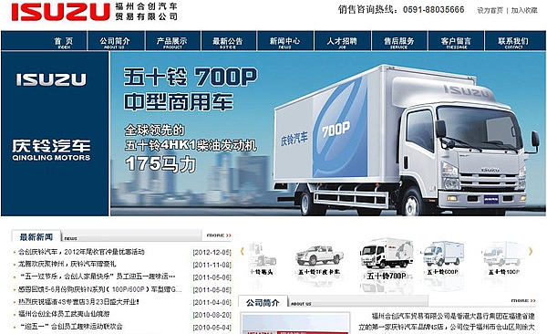 福州合創汽車貿易有限公司是香港大昌行集團在福建省建立的第一家慶鈴汽車品牌4S店,公司位于福州市倉山區則徐大道631號閩豐汽車廣場,經營范圍:慶鈴汽車銷售、慶鈴汽車維修 。公司占地面積6000平方米,其中車間面積1200多平方米,展廳面積1500平方米,其它設施包括員工培訓室、客戶休息區、網上漫游設施及咖啡茶座均一應俱全。 福州合創汽車貿易有限公司官方網站:http://www.fzhc-isuzu.com 網站由專業網站制作公司廣州宏藍科技設計制作 |