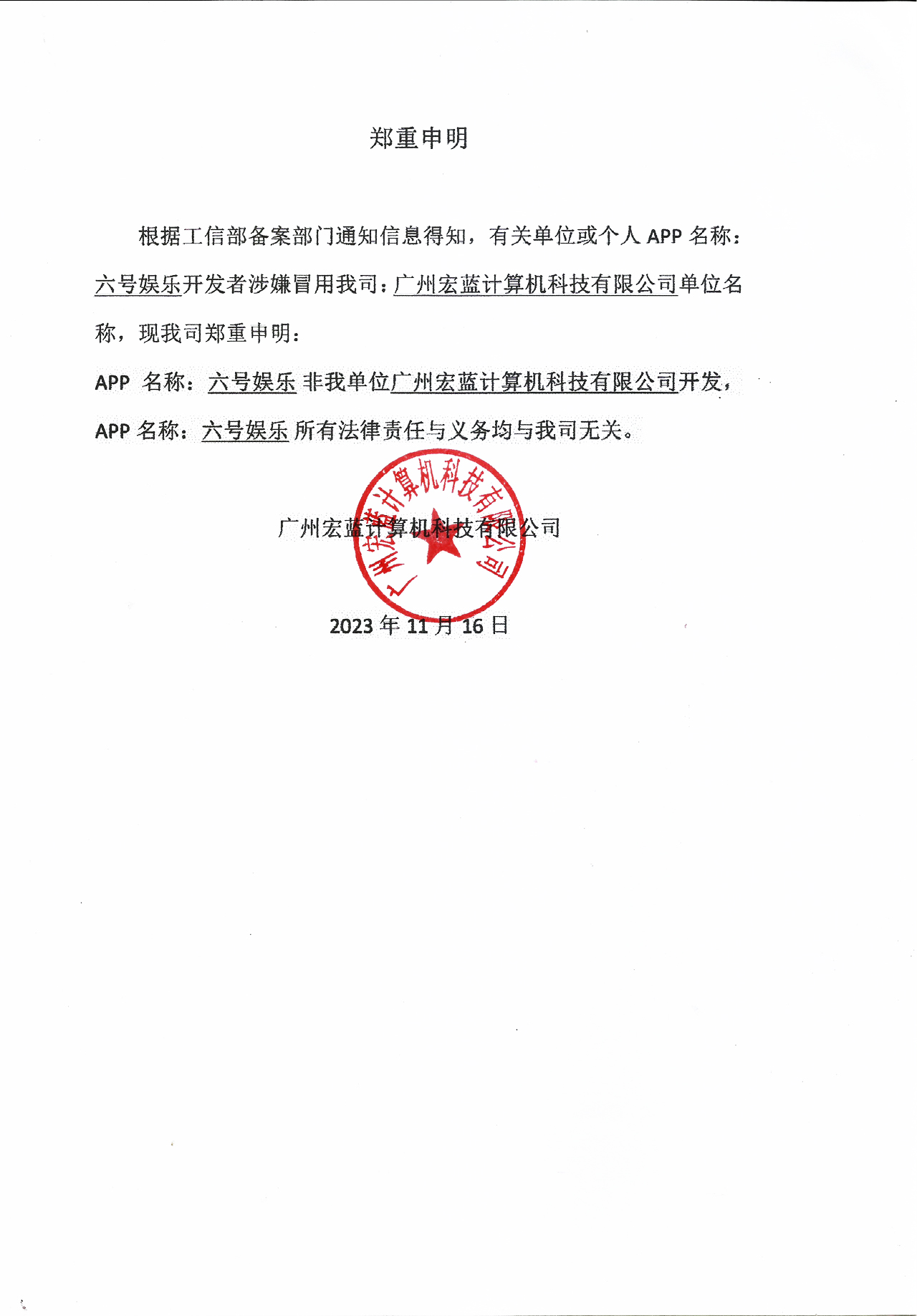 鄭重申明